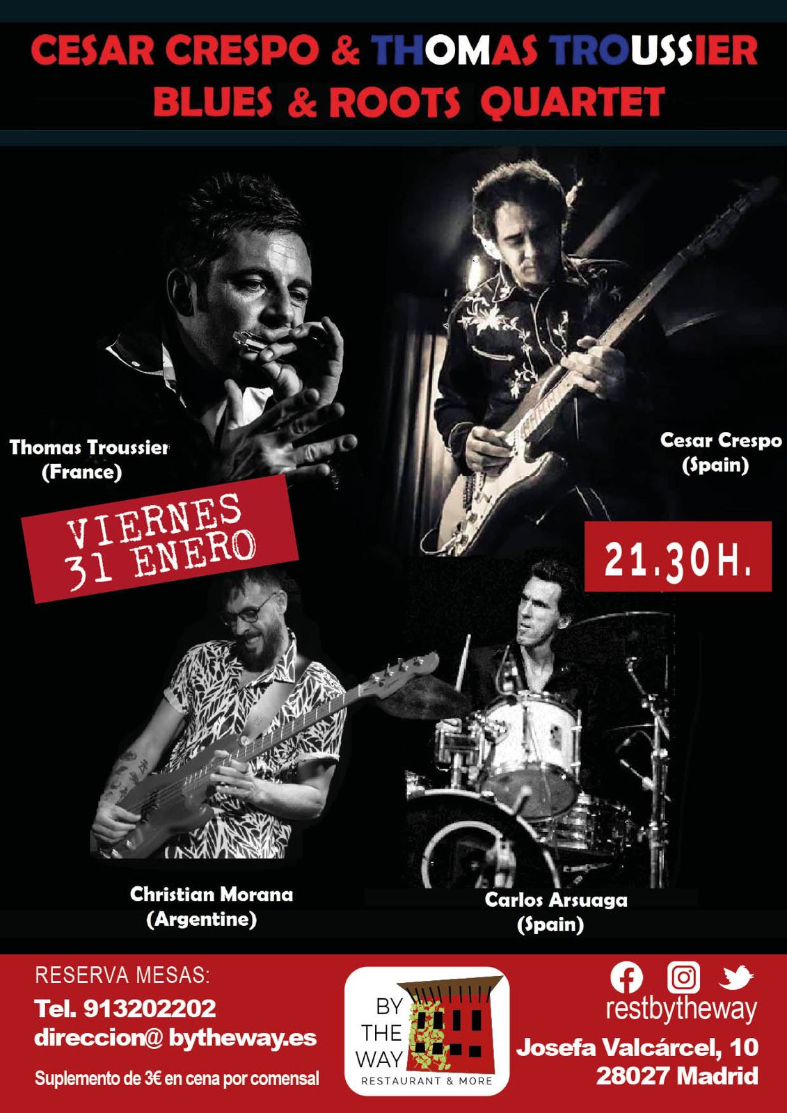 Junto a Carlos Arsuaga a la batería y Christian Morana al bajo, una de las bases rítmicas más sólidas y solicitadas del circuito, forman este cuarteto que viaja por los grandes clásicos y joyas ocultas de su amplio repertorio de Blues & American Roots Music. Enorme nivel! 🎶✨